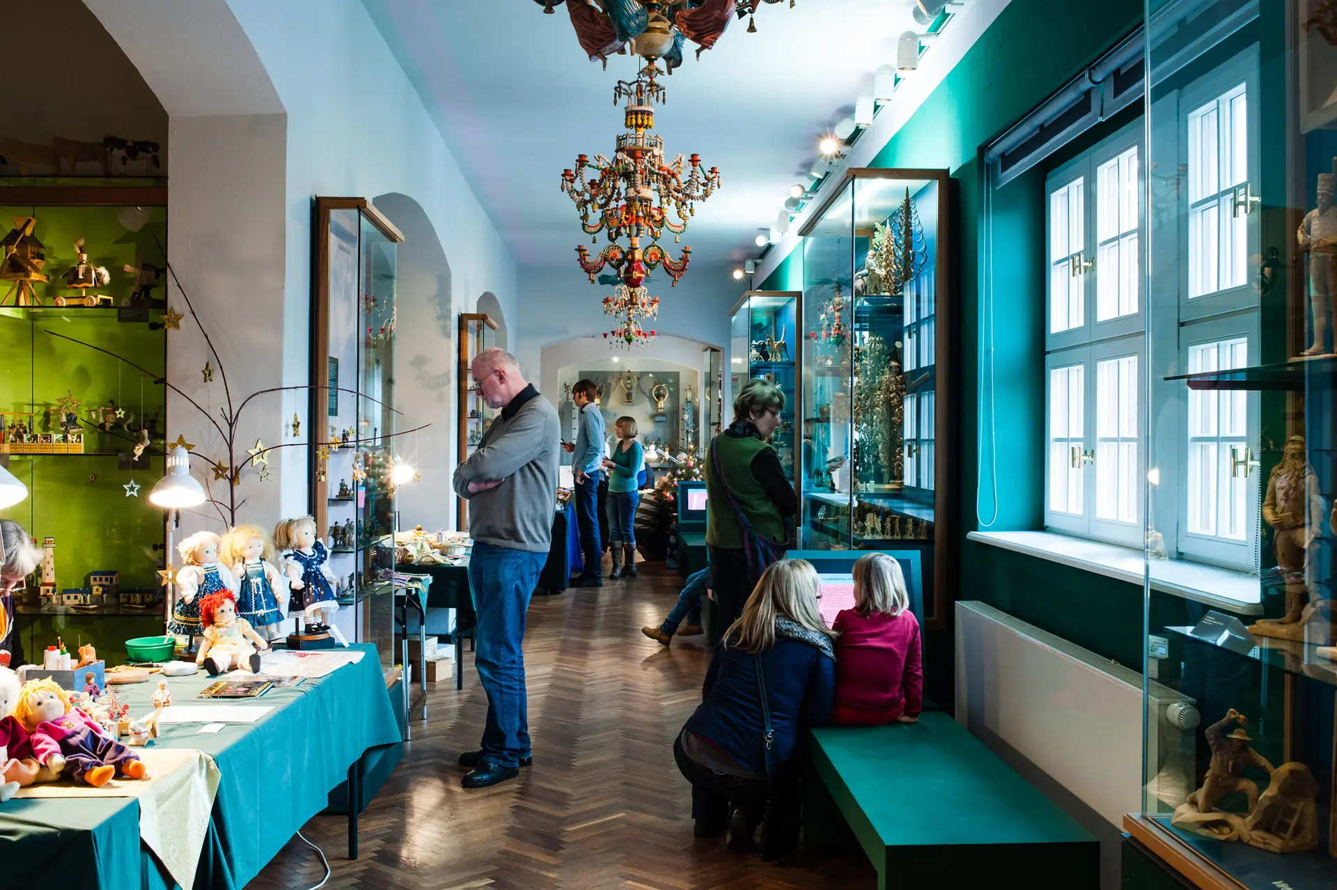 Darunter fällt keinesfalls nur erzgebirgischer Weihnachtsschmuck wie Bergmann, Lichterengel und Co. Auch die einst in Sachsen boomende Spielzeugindustrie, Puppenstuben, Trachten der als Nationale Minderheit geschützten Sorben oder die rekonstruierte Stube eines Damastwebers, der auf engstem Raum mit seiner Familie lebte und arbeitete, sind im Jägerhof unweit des Goldenen Reiters zu bewundern.